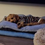 Winnie is a six month old female Cavapoo. This picture is after her surgey. We called her our “Bannana in