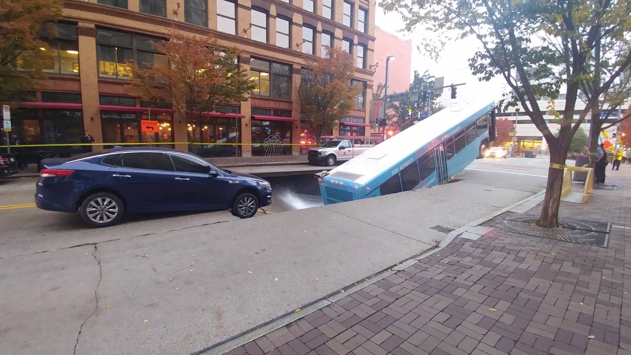 Sinkhole Swallows Up City Bus