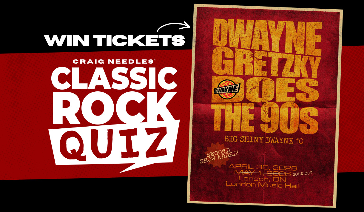 Listen to Craig Needles and the Classic Rock Quiz for your chance to see Dwayne Gretzky, bringing his “Big Shiny