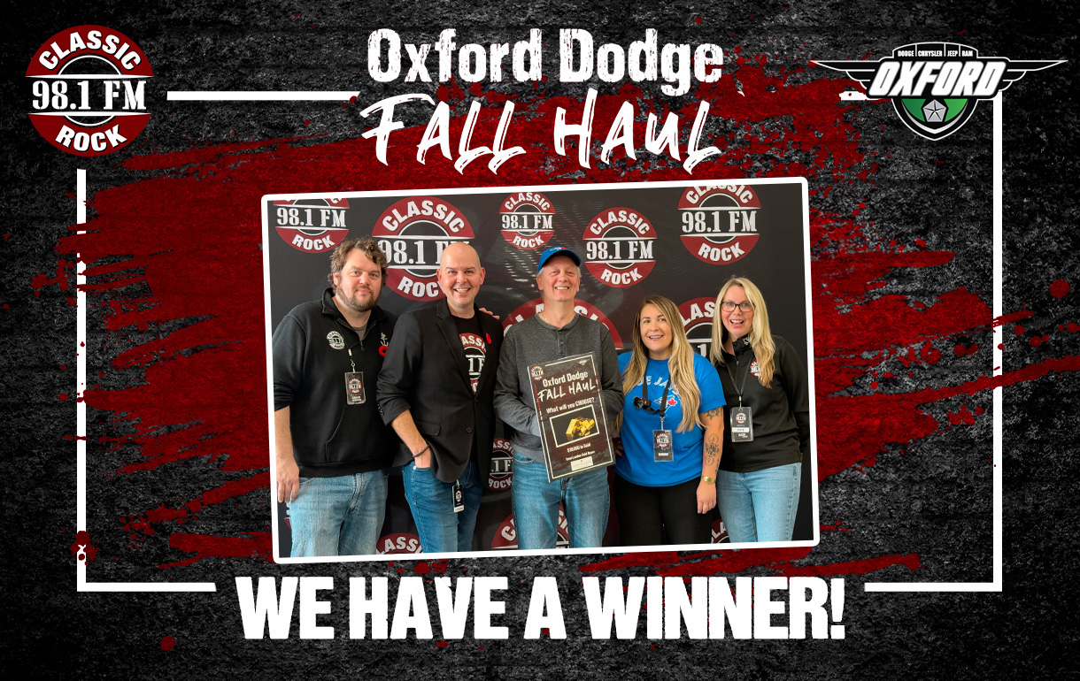 If you WIN this contest, you are NO LONGER eligible to play our other contests for 60 days. Draw to be made on Saturday, November 1, 2025 at Oxford Dodge (1249 Hyde Park Road, London, Ontario, N6H 5K6. (11:15 am –MUST BE PRESENT AT 10:00 am TO REGISTER WITH VALID PHOTO I.D.). Contestants must be at least 18 years of age to enter and reside within the Classic Rock, 98.1 listening area. (London Ontario coverage area)