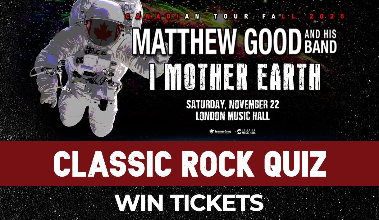 November 14, 2025 3:20 pmListen to Craig Needles and the Classic Rock Quiz all week for your chance to beat the box office and win tickets to see Matthew Good and his band & I Mother Earth at London Music Hall on Friday November 21st, part of the London Music Hall 20th Anniversary Concert series. Play the quiz, weekday afternoons at 3:00pm. Text QUIZ to 519-679-3733 when you hear the cue to text to have a chance to play the game and win.