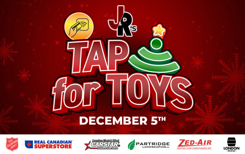 TAP FOR TOYS is coming Friday, December 5th! Please swing by the Covent Garden Market between 7am & 7pm to visit J & Rubino, Kate, and Craig, and we’ll tap your debit or credit card and donate the funds to SALVATION ARMY London Middlesex! Powered by the Real Canadian Superstore Oxford St E, with special thanks to CARSTAR London East and London West, Partridge Landscaping, Zed-Air Heating & Air Conditioning and London Brewing Co-operative for their support.
