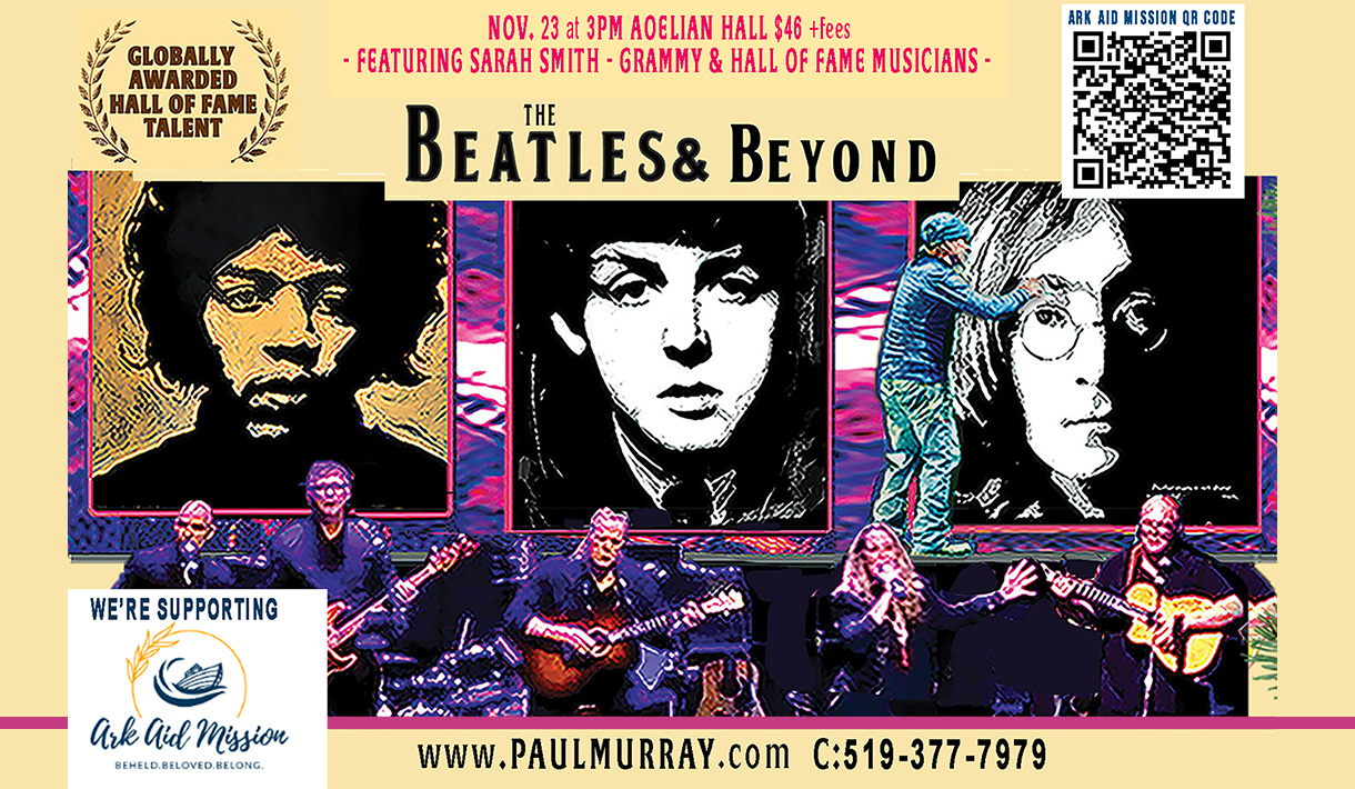 November 14, 2025 3:49 pmListen to Kate Wright all week for your chance to win a pair of tickets for The Beatles & Beyond 60’s & 70’s Charity Concert in support of the Ark Aid Mission. Music ‘n Arts Collide presents an all-new, electrifying concert celebrating the most significant era in rock. Have fun singing along to Clapton, Elvis, Hendrix, Joplin, Lightfoot, The Doors, The Beatles, The Rolling Stones, Ray Charles, Chet Atkins, and others while watching them come alive!