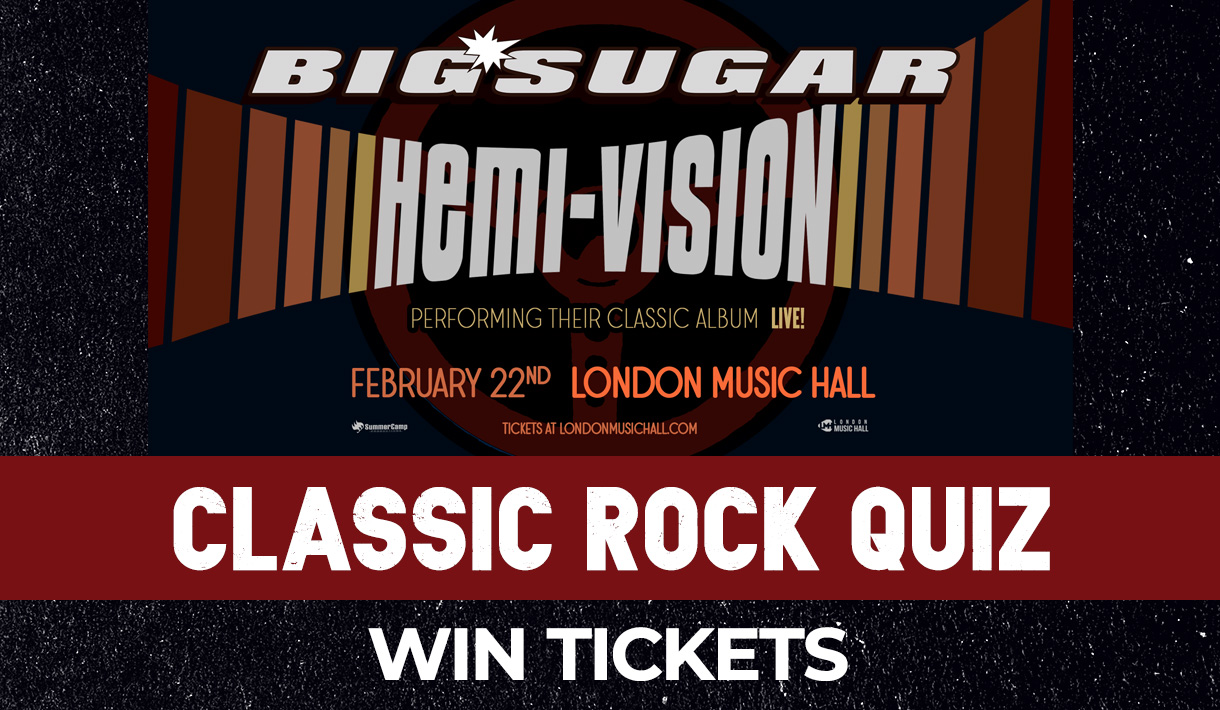 December 4, 2025 11:12 amListen to Craig Needles and the Classic Rock Quiz all week for your chance to win a pair of tickets for Big Sugar performing their classic album Hemi-Vision LIVE on Sunday February 22nd at London Music Hall as part of the London Music Hall’s 20th anniversary concert series. Text the word QUIZ to 519-679-3733 when you hear the cue and you’ll have a chance to play and win!