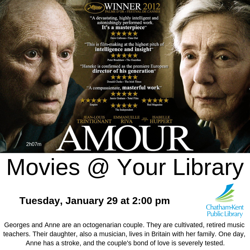 The Tuesday Movie @ Your Library is Amour, at 2.