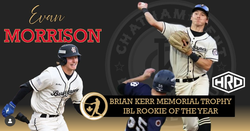 Chatham-Kent Barnstormers second baseman Evan Morrison was named the IBL Rookie of the Year on Monday.