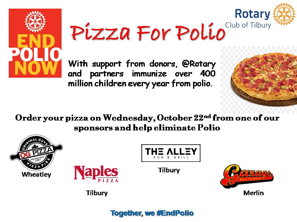 Any pizza ordered today from the participating restaurants, takeout or delivery, will see a portion of sales being donated back to the clubs to help eradicate polio worldwide.