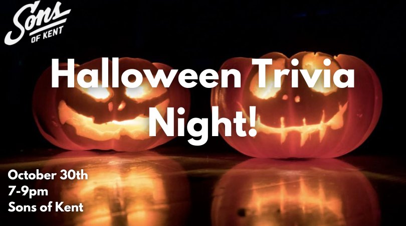 Trivia starts at 7:30. Teams of 4. Halloween themed.
