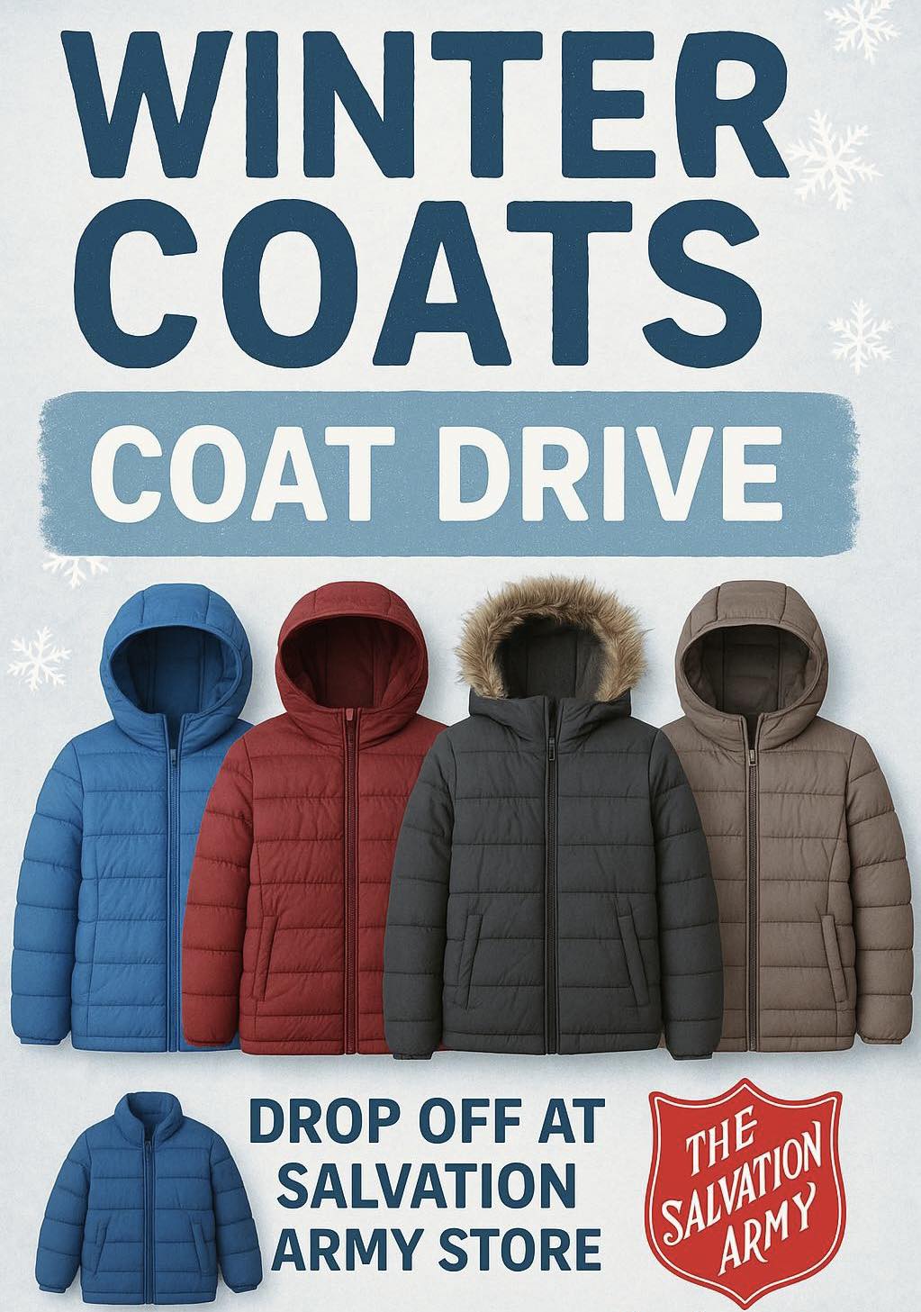 People in need of a coat can contact The Salvation Army’s Community Services Offices in Wallaceburg, Chatham, or Ridgetown/Blenheim for more information. Check here for contact information.