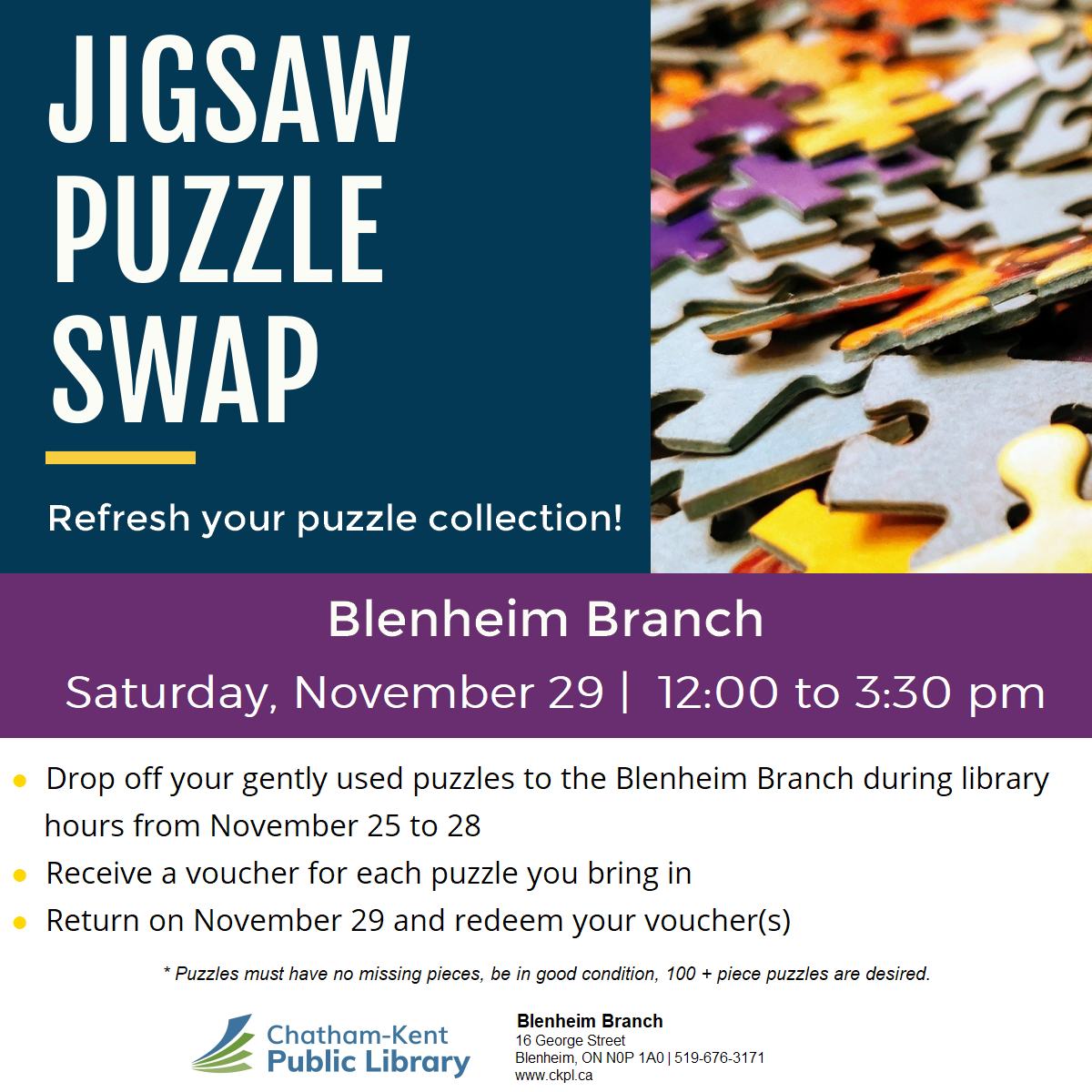 The Chatham-Kent Public Library is hosting another Puzzle Swap, this time at the Blenheim Branch.