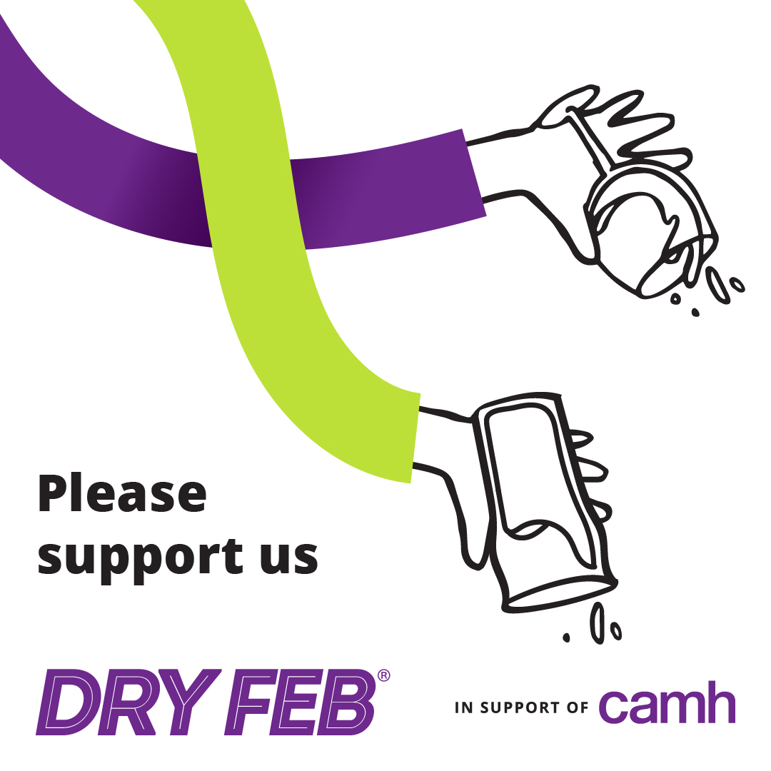 Dry Feb challenges you to give up alcohol for the 28 days of February to raise funds for CAMH – Canada’s largest mental health teaching hospital. Going alcohol-free for a month can give you benefits such as improved sleep, increase in energy, and helps you feel clearer and more balanced.