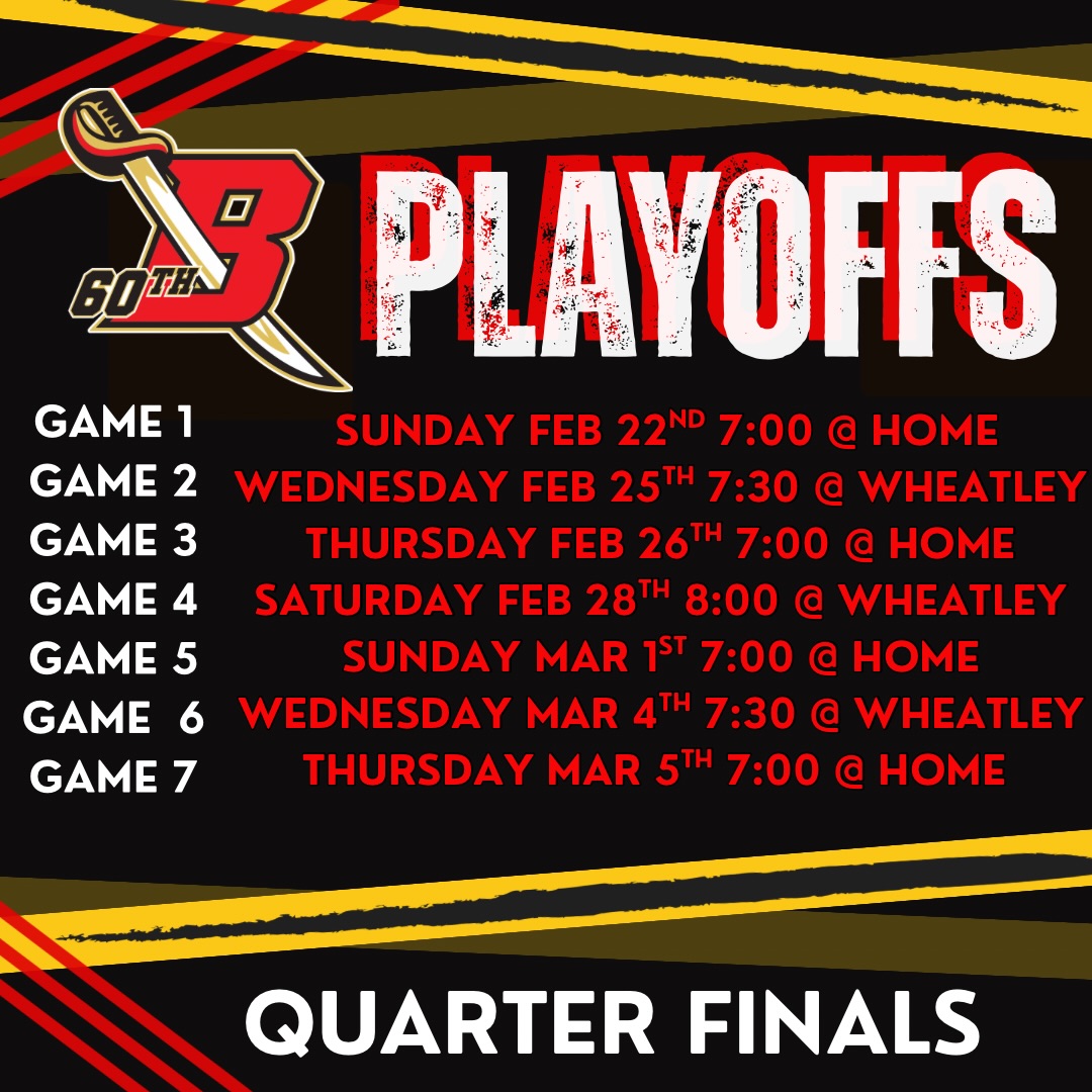 The Blenheim Blades and Wheatley Omstead Sharks are the only two local PJHL team still alive – and they’re playing each other in the Stobbs Division Quarter Finals.
