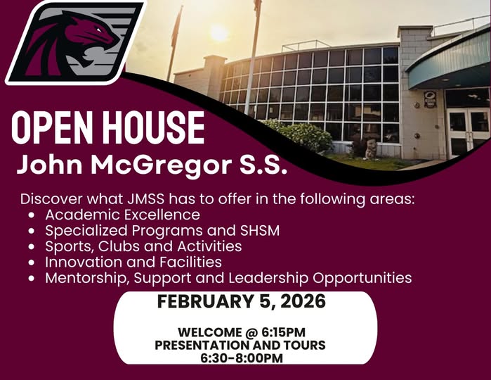 John McGregor Secondary School will hold their Grade 9 Open House tonight.