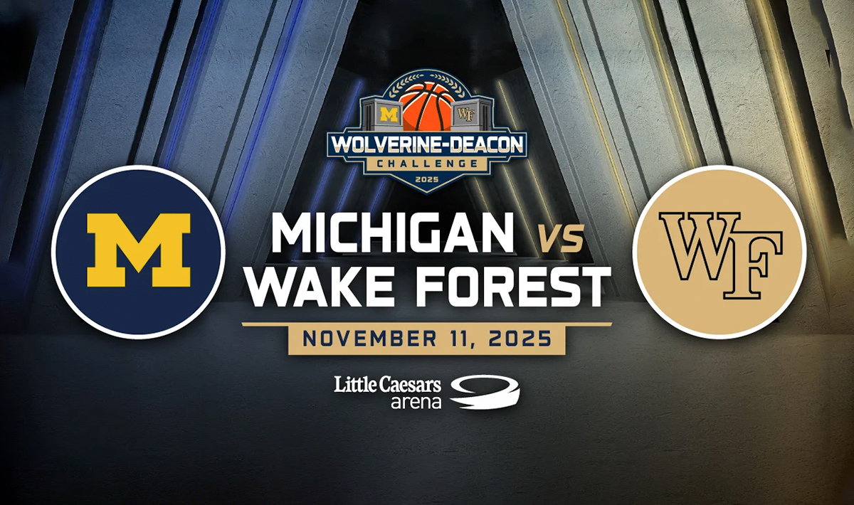 The Michigan Wolverines take on the Wake Forest Demon Deacons in the Wolverine-Deacon Challenge — live at Little Caesars Arena in Detroit on Tuesday, November 11 at 6:30 p.m.