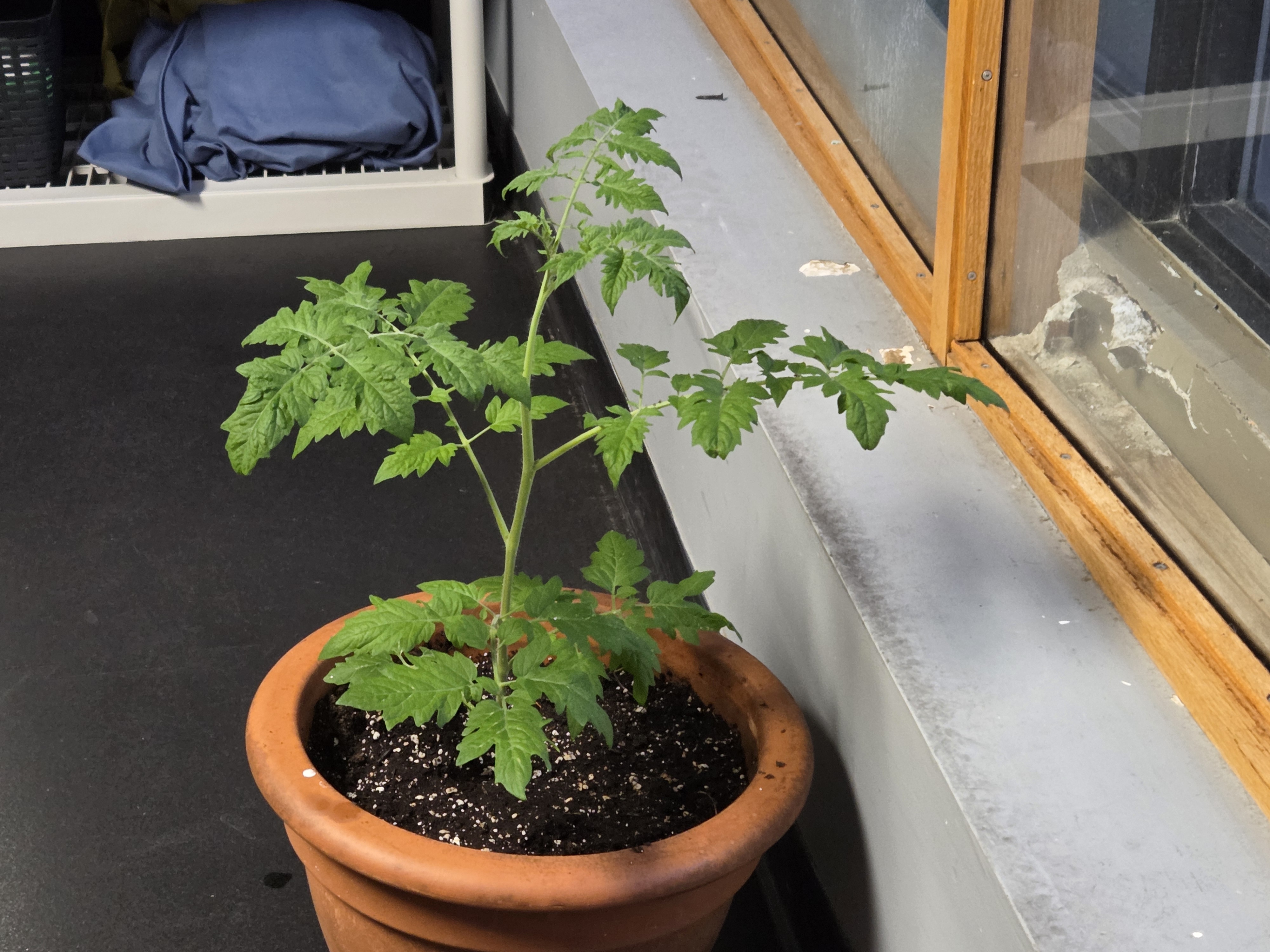I have named him Tom….get it? I asked my boss if I could grow a tomato plant in the studio